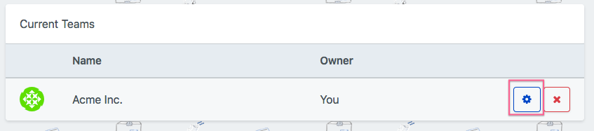 Once the team is created, you will see a new section with the team you just created inside. To invite a new user to the team, click the gear icon on the right side: